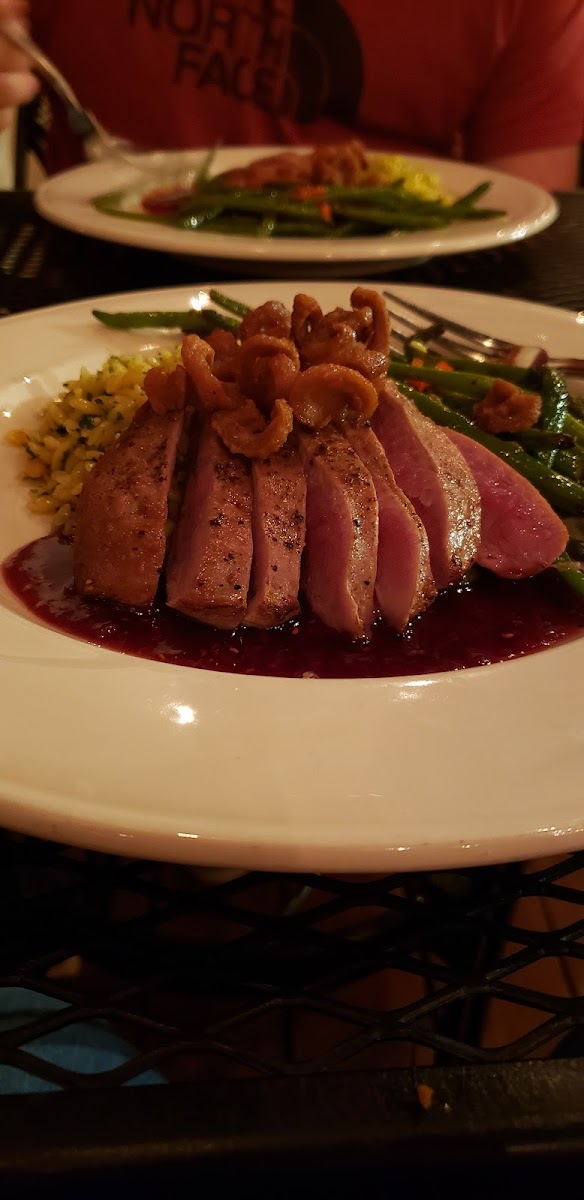 The rich flavors continue with the Blackened Trout, topped with vibrant avocado kiwi salsa, ensuring a burst of freshness and color on your plate. Each entrée is thoughtfully prepared, offering an array of palate-pleasing flavors that will have you dreaming of your next visit.